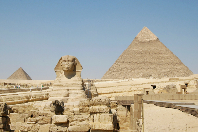 The Giza Pyramids consist of three large pyramid complexes, the largest called the Great Pyramid of Giza, the Great Sphinx, and a collection of cemeteries.